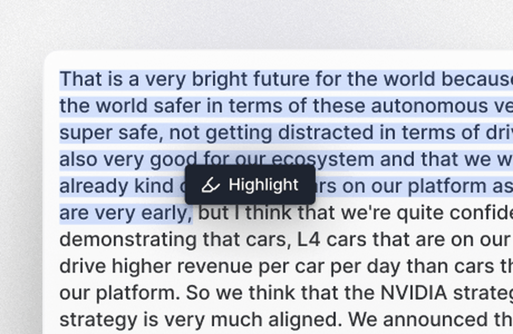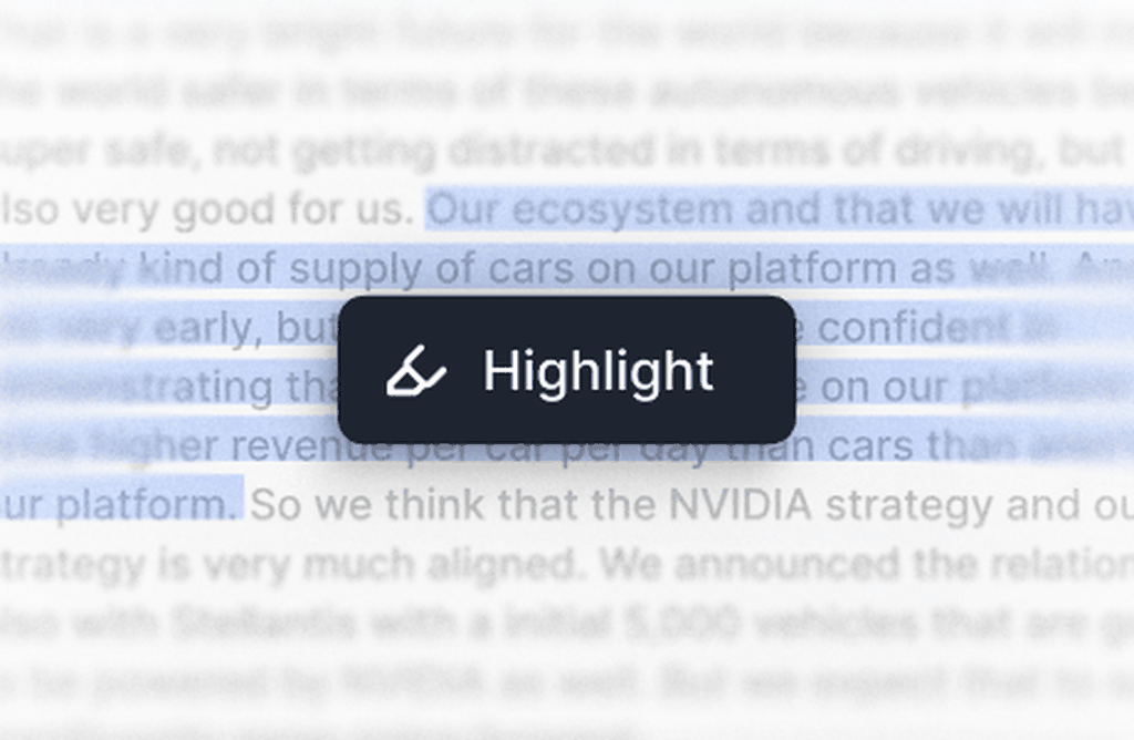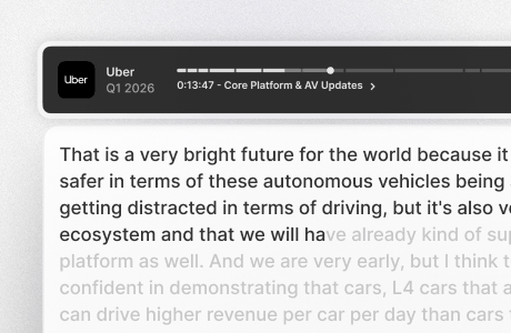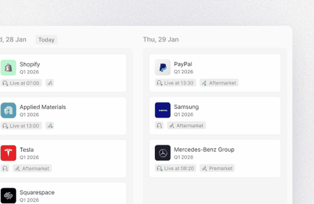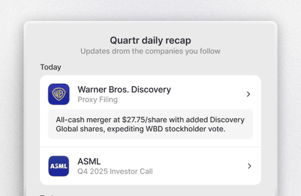 FeaturesAn overview of Quartr's features and how to use them.AI chatFind the information you need faster.Global searchSearch across all IR documents.Slide searchScan keyword mentions across slide presentations globally.Transcript searchFind what was said, who said it, and when. Filings searchFind the information you need faster.Live earnings calls & transcriptsBe the first to know. Act with conviction.Event calendarSmarter time management.WatchlistsOrganize your coverage.Keywords alertsNever miss what matters.Daily & weekly recapsAlways stay up to date.SummariesSee highlights instantly from any event.Slide history comparisonTrack narrative shifts.Transcript highlightingEasily store key findings.ExportBring custom datasets into other tools.Previous-AI chatNext